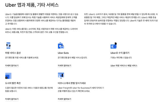 Uber : 차량 서비스, Uber Eats, 수익 올리기, 도시 발전 촉진, 비즈니스
