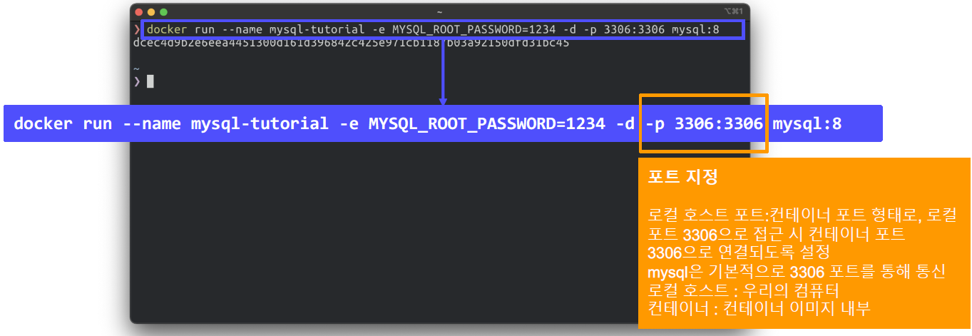 다운받은 MySQL 이미지 기반으로 Docker Container를 만들고 실행