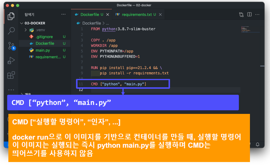 - CMD로 이미지 실행 시 바로 실행할 명령어를 지정