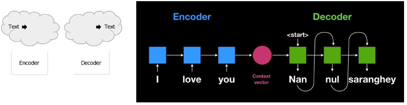 - 기존 seq2seq 모델은 인코더 RNN 구조와 디코더 RNN 구조가 따로 존재