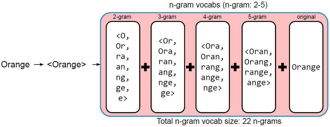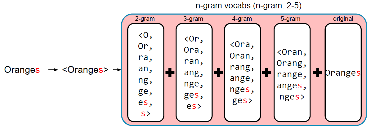 - 만약 OOV일 경우, 입력 단어의 n-gram vector들의 합산을 return함