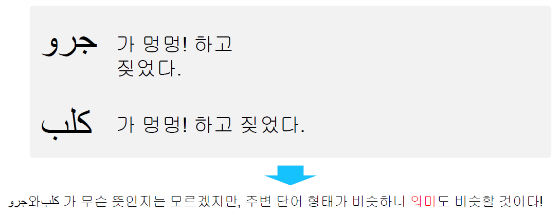 한 단어의 주변 단어들을 통해, 그 단어의 의미를 파악