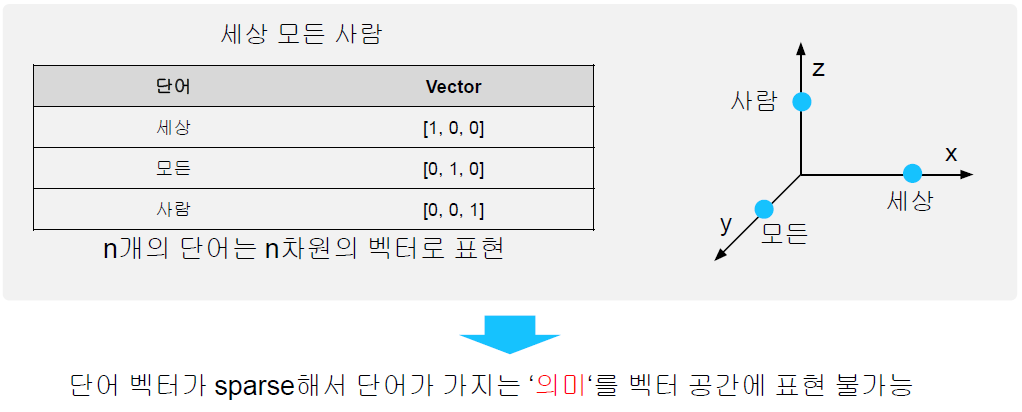 가장 단순한 표현 방법은 one-hot encoding 방식 → Sparse representation