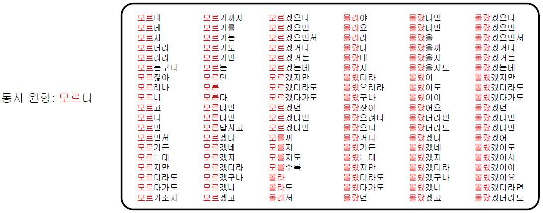 한국어는 다양한 용언 형태를 가짐