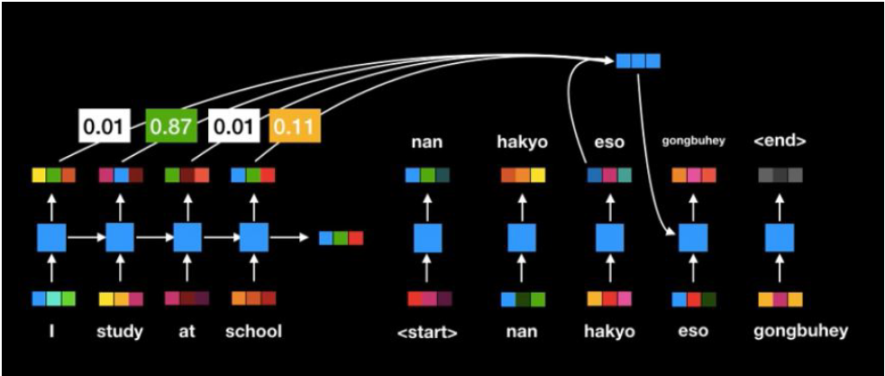 기존 Seq2Seq의 encoder, decoder 성능을 비약적으로 향상시킴