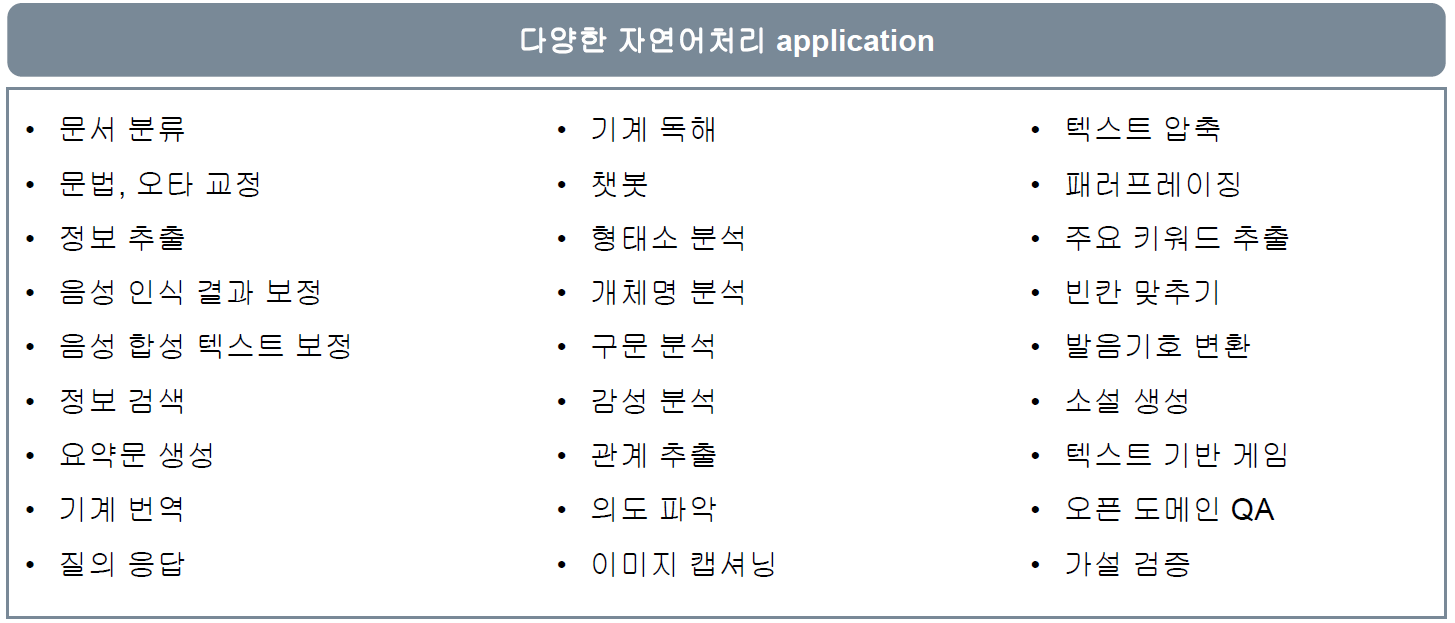 - Encoder-Decoder 방식으로 접근하면 모든 자연어처리 어플리케이션을 개발할 수 있게 됨