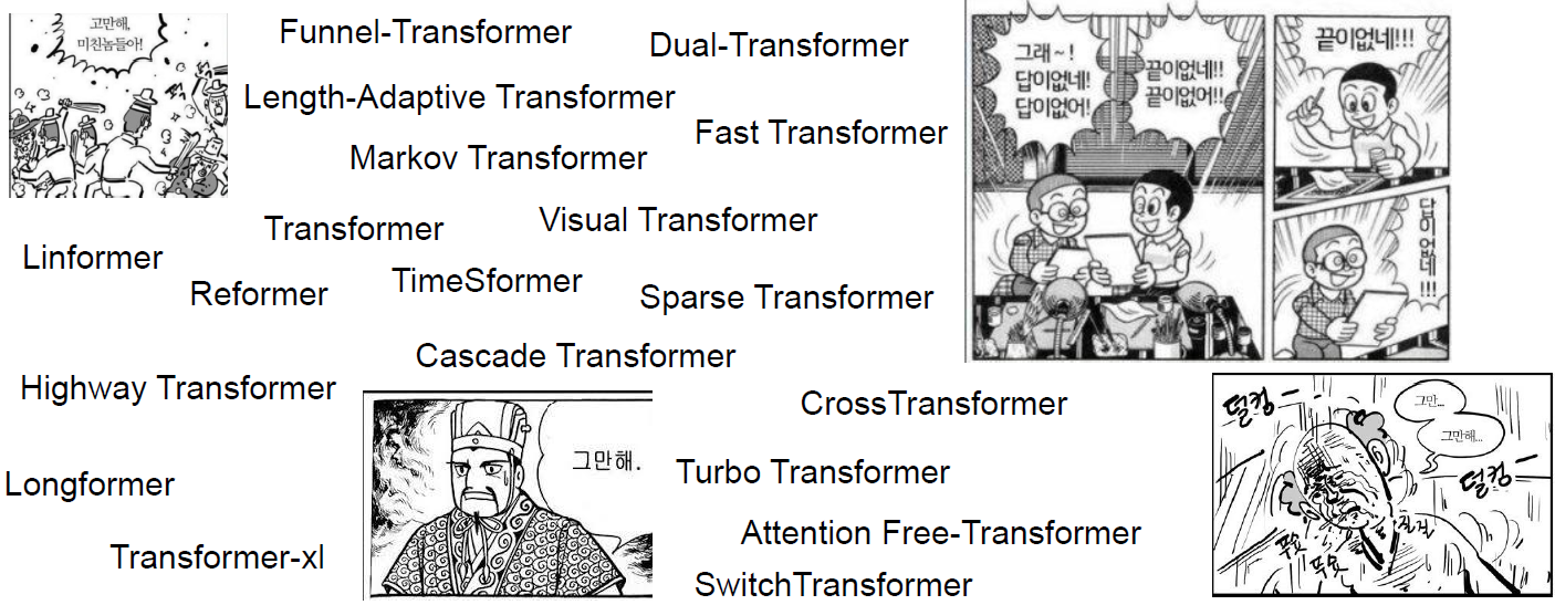 - Transformer가 처음 제시된 이후 현재까지 굉장히 다양한 Transformer network가 제시되고 있음