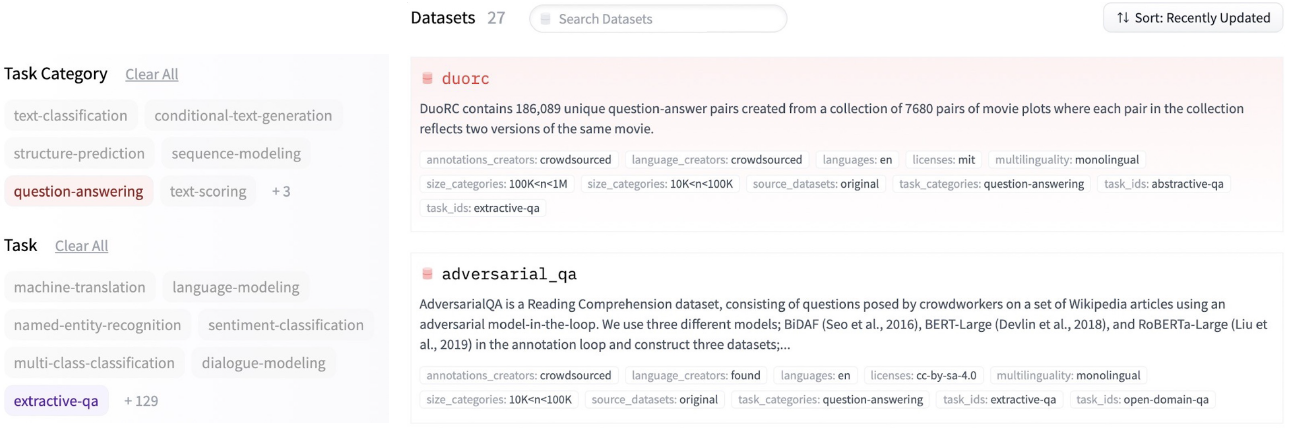 Extraction-based MRC datasets in Hugging Face datasets