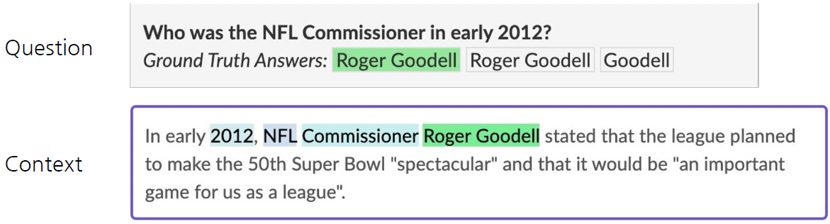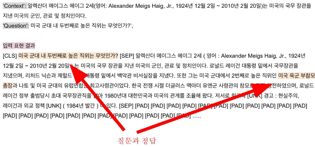 질문(question)의 답변(answer)이 항상 주어진 지문(context)내에 span으로 존재