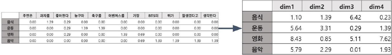 더 작은 차원의 고밀도 벡터 (length = 50-1000)