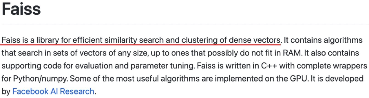 tutorial : https://github.com/facebookresearch/faiss/tree/main/tutorial/python