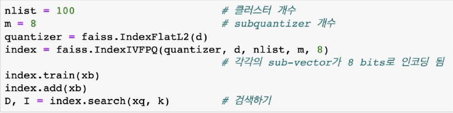 전체 벡터를 저장하지 않고 압축된 벡터만을 저장