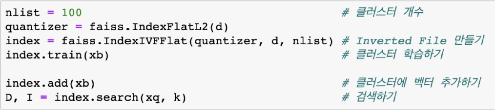 ⇒ (각 cluster의 centroid id)와 (해당 cluster의 vector들)이 연결되어있는 형태