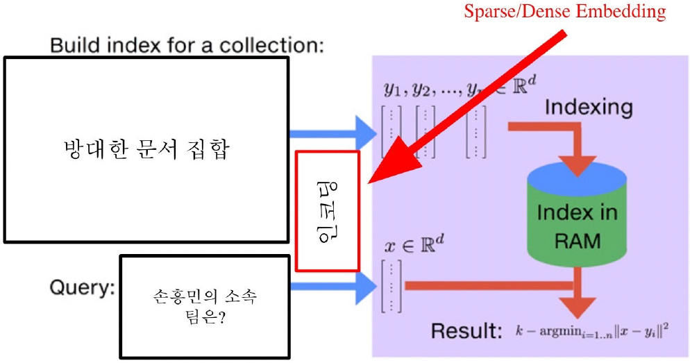 - 저장해둔 모든 Sparse/Dense 임베딩에 대해 일일히 내적값을 계산하여 가장 값이 큰 passage를 추출