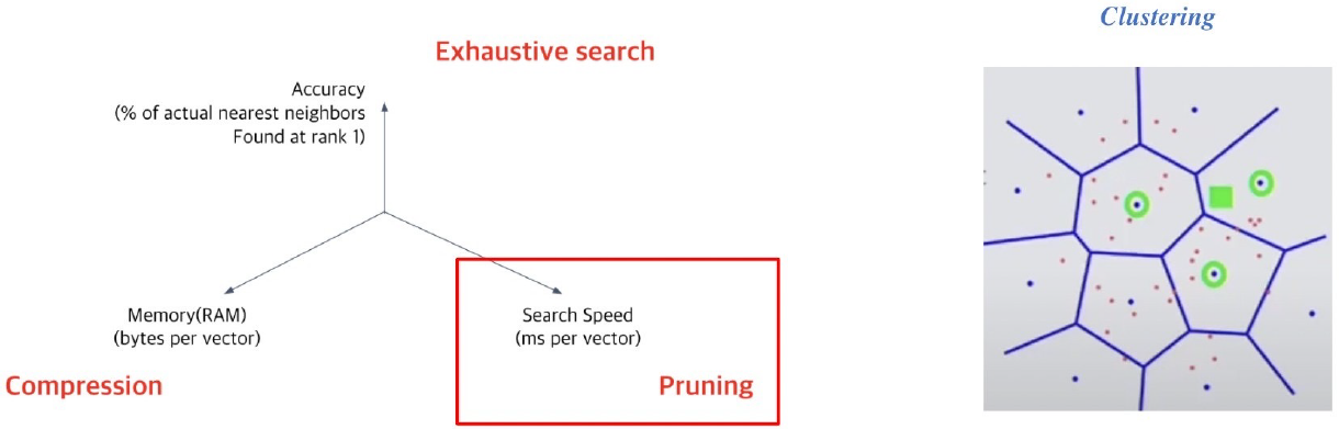 클러스터링을 통해서 가까운 클러스터 내 벡터들만 비교함