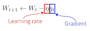 - mini batch만큼의 예제들로부터 gradient를 계산하고 가중치 갱신