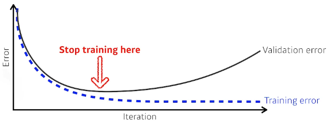 - early stopping을 위해서 추가로 검증 데이터가 필요함