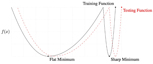 - flat minimum에 도달하면 test에서도 loss가 적지만 sharp minimum에 도달하면 test에서 loss가 비교적 큼