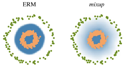 - Mix-up constructs augmented trainig examples by mixing both input and output of two randomly selected training data.