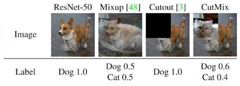 - CutMix constructs augmented training examples by mixing inputs with cut and paste and ouputs with soft labels of two randomly selected training data.