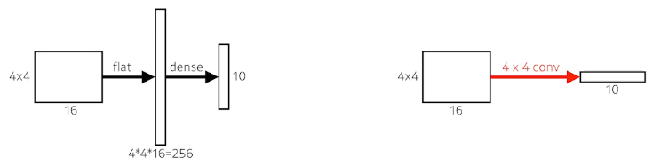 - Right(fully convolutional network) : 4 x 4 x 16 x 10 = 2,560