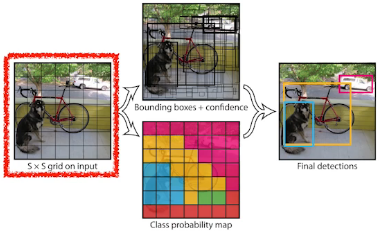 - 이미지가 주어지면 YOLO는 이를 SxS 그리드로 나눈다.