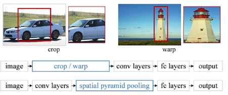 - In R-CNN, the number of crop/warp is usually over 2,000 meaning that CNN must run more than 2,000 times (59s/image on CPU).