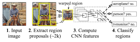 (2) 약 2,000개의 영역(선택적 검색 사용)을 추출 (extracts around 2,000 region proposals (using Selective search))