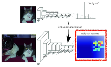 - fully connected layers를 convolution layers로 변환하면 분류 네트워크가 heatmap를 출력할 수 있다.