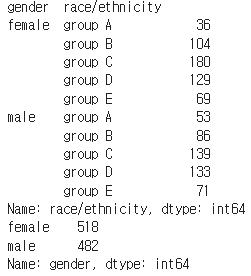 group = student.groupby('gender')['race/ethnicity'].value_counts().sort_index()