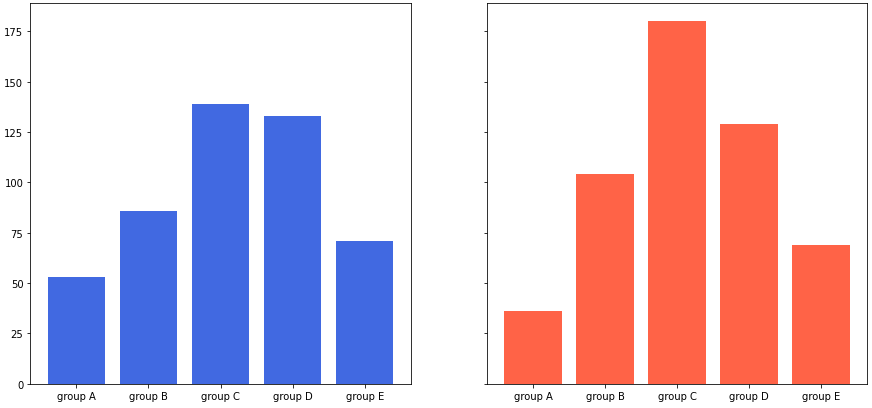 - 각 barplot은 자체적으로 y 범위를 맞추기에 좀 더 y축의 범위를 공유할 수 있다.