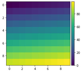 im = ax.imshow(np.arange(100).reshape((10, 10)))
