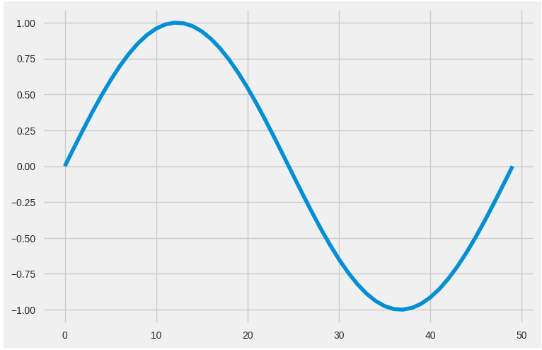 plt.plot(np.sin(np.linspace(0, 2 * np.pi)))