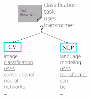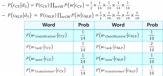 For a test document $d_5$ = “Classification task uses transformer”