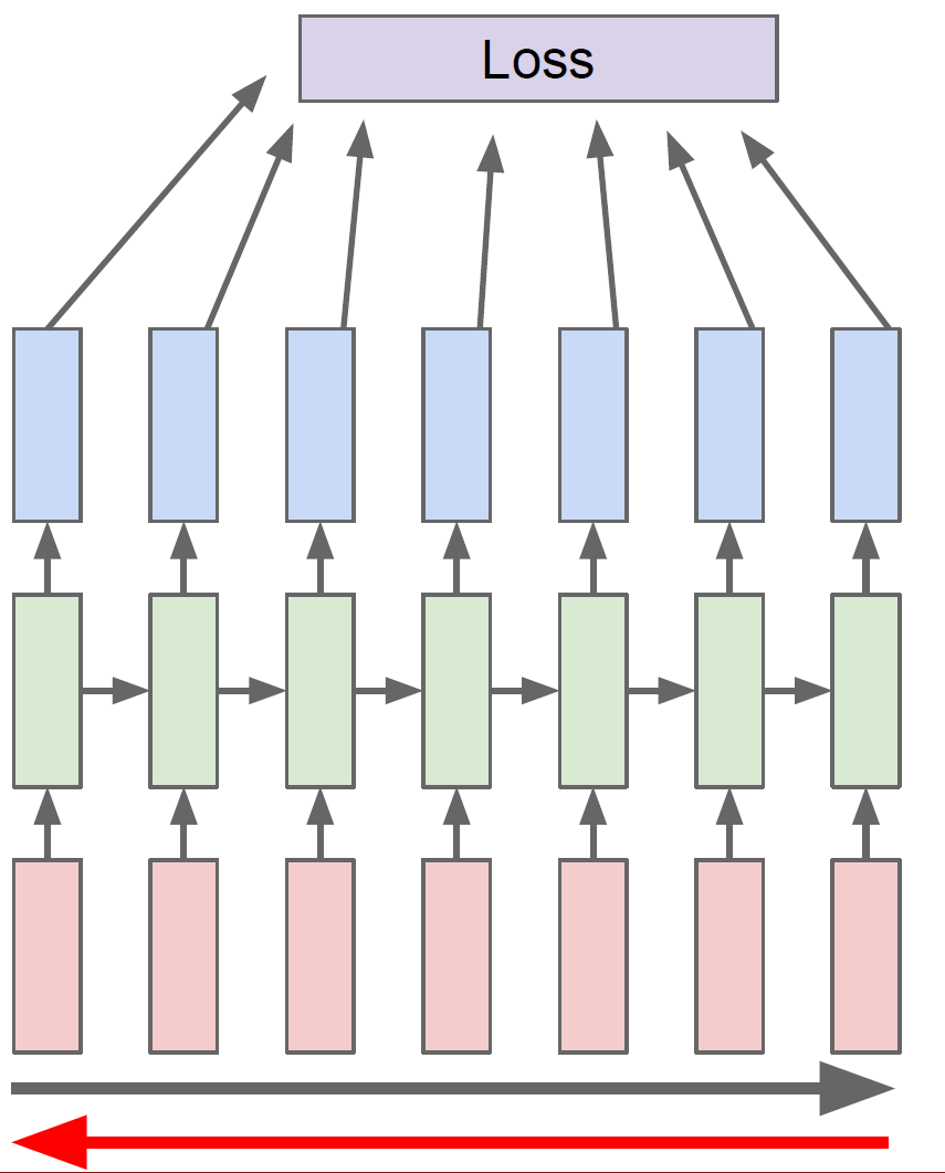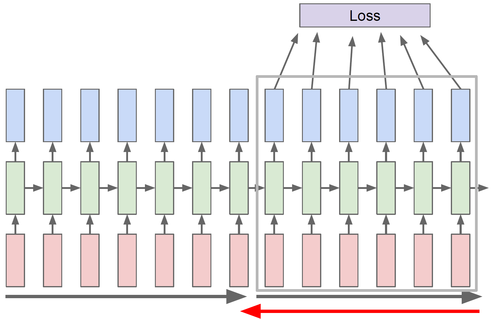전체 시퀀스에서 forward를 통해 loss를 계산하고 backward를 통해 전체 시퀀스의 gradient를 계산