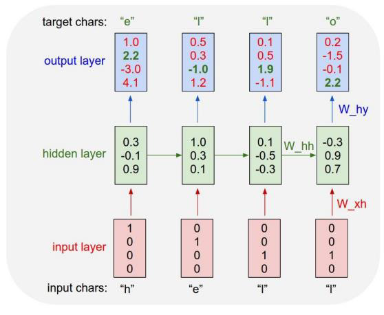 http://karpathy.github.io/2015/05/21/rnn-effectiveness/ $Logit=W_{hy}h_t+b$