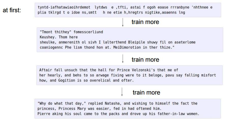 http://karpathy.github.io/2015/05/21/rnn-effectiveness/ Results of trained RNN