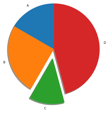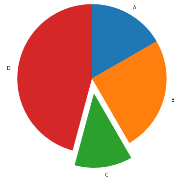 ax.pie(data, labels=labels, explode=explode, startangle=90,