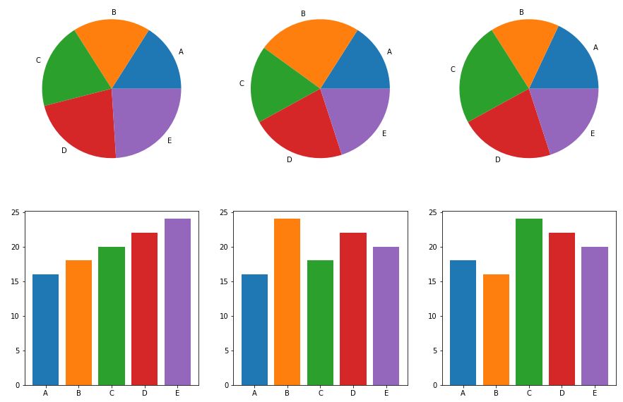 같은 데이터로 Pie chart와 Bar Chart를 비교하며 장단점을 비교하면 다음과 같다.