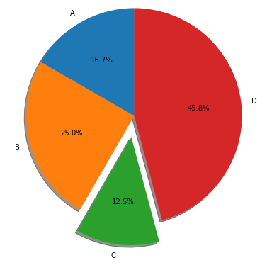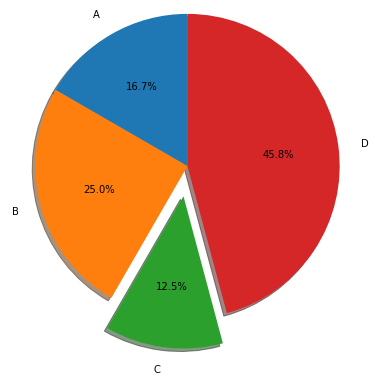 ax.pie(data, labels=labels, explode=explode, startangle=90)