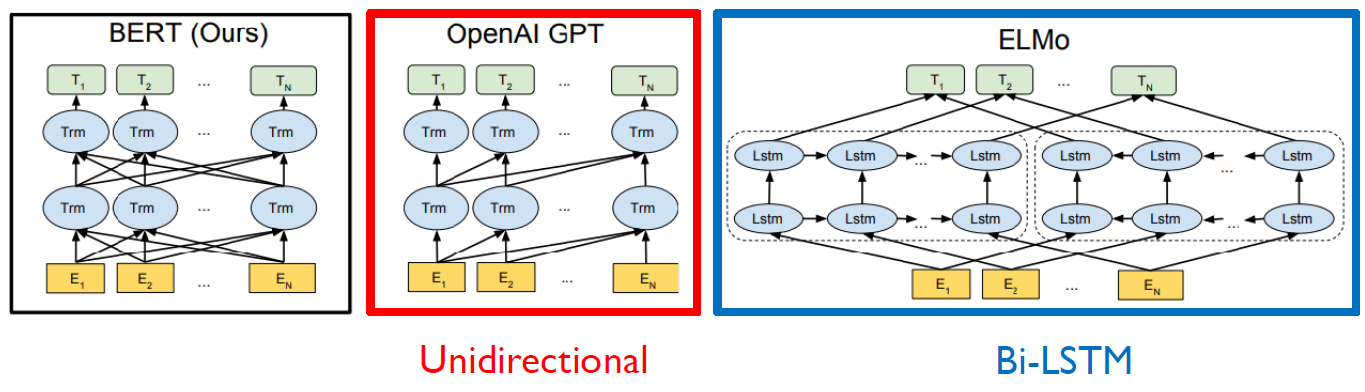 - Language models only use left context or right context, but language understand bi-directional