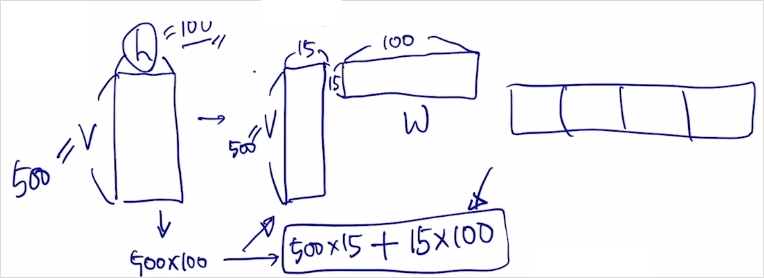 - 500x100 → 500x15 + 15x100 파라미터로 수가 줄어듬