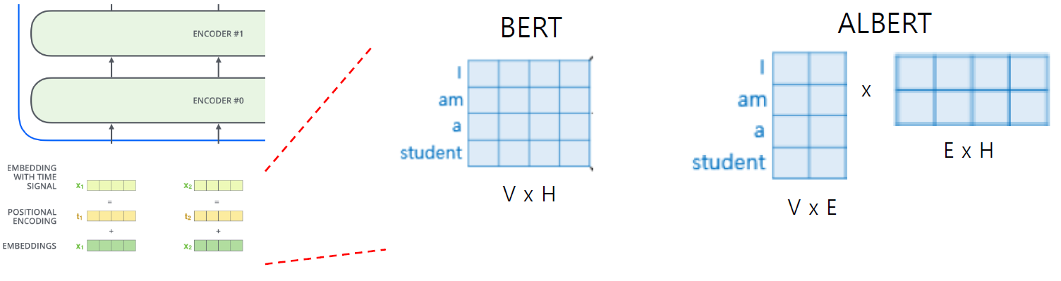 http://jalammar.github.io/illustrated transformer/ ALBERT는 임베딩 레이어의 차원을 줄이는 기법을 제시