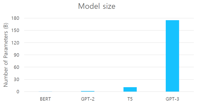 GPT-2에 비해서 훨씬 더 많은 파라미터 수를 가지도록 트랜스포머의 self-attention block을 더 많이 쌓음
